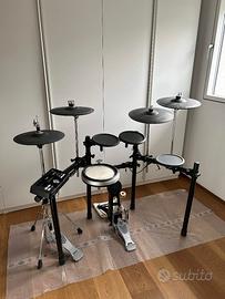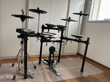 Batteria elettronica Yamaha DTX502, set completo di RACK, centralina (trigger module), cassa con pedale meccanico, rullante, 2 tom, 1 timpano, 2 piatti crash con asta, 1 piatto ride (3 zone di suono) con asta aggiuntivo rispetto alla configurazione standard, charleston con pedale meccanico, cavo di alimentazione e cavi di collegamento. In ottime condizioni, come nuova, solo uso domestico. Vendo per passaggio a batteria acustica. Disponibile per il ritiro (già imballata).