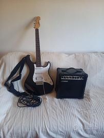 Chitarra elettrica EG112 nera e bianca in legno di abete rosso e legno di ontano, con amplificatore, custodia e accordatore, cinghia, manovelle e corde. L'oggetto si trova a Sestu (CA). Eventuale spedizione a carico dell'acquirente.