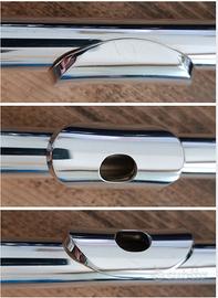 La testata in argento sterling offre un suono ricco e profondo e un'eccellente proiezione. È dotato di un meccanismo per il Mi acuto che facilita l'esecuzione del Mi acuto.