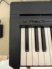 Vendo Yamaha P-45, pianoforte digitale a 88 tasti pesati con meccanica GHS (Graded Hammer Standard), in condizioni pari al nuovo. Suono autentico, tocco realistico e design compatto e leggero — perfetto per chi studia, per musicisti che cercano uno strumento affidabile da casa o per chi vuole iniziare a suonare con un piano di qualità. Caratteristiche principali: 88 tasti pesati con meccanica GHS (più pesanti nei bassi, più leggeri negli acuti, come un pianoforte acustico) 10 suoni strumentali (tra cui Grand Piano, Electric Piano, Organo, Strings) Polifonia a 64 note Connessione USB to Host per collegamento a PC/tablet Uscita cuffie per suonare in silenzio a qualsiasi ora Alimentazione a corrente, compatto e trasportabile (11,5 kg) Pedale sustain incluso Condizioni: come nuovo, utilizzato pochissimo, nessun segno di usura. Perfettamente funzionante. Libro Solfeggio Incluso
