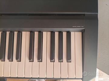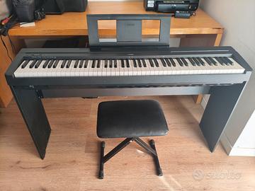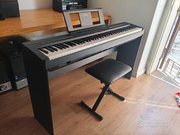 Pianoforte digitale Yamaha P45 in perfette condizioni con un supporto in legno, pedale sustain, alimentatore e sgabello. Solo ritiro a mano.