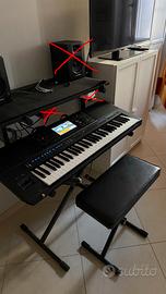 Vendo causa trasloco yamaha psr-sx900 comprata nuova 3 anni fa completa di sgabello e poggitastiera a doppio appoggio (gli accessori che si vedono poggiati non sono inclusi). Usata pochissimo, come nuova. No spedizione, solo consegna di persona.