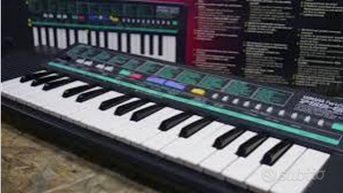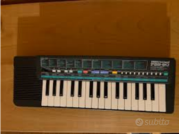 Mitico mini arranger Yamaha 32 tasti, risalente ai primi anni 90.In quell' epoca era considerato un giocattolo abbastanza costoso,di fatto un mini Sint/ arranger a tutti gli effetti,con un centinaio di suoni analogici ,ritmi e accompagnamenti automatici..