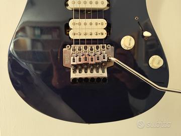 vendo per inutilizzo Yamaha RGX 421 DM, made in Taiwan, primi anni '90, manico e tastiera in acero, molto comoda, due pickup humbucker ed un single coil e selettore a 5 posizioni, ponte yamaha TRS-PRO licensed Floyd Rose, completo di leva e blocca corde, corpo in ontano, colore blu.