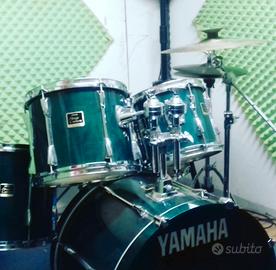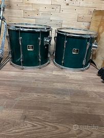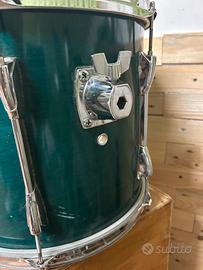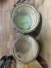 La batteria é in vendita senza aste, pedale cassa e piatti. Ha le sue custodie e va sostituita la pelle della gran cassa e del rullante.