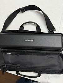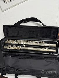 Flauto Traverso YAMAHA YFL-222 usato solo una settimana. FLAUTO TRAVERSO IN DO CON CHIAVI CHIUSE FUORI LINEA Una boccola progettata per guidare i principianti verso il corretto utilizzo del respiro, le chiavi con dimensioni attentamente studiate e la loro sagomatura, offrono un equilibrio ottimale ed una facile suonabilità. Questi e altri particolari sono alcune delle ragioni per cui i flauti Yamaha della serie Student e Intermedia sono diventati best sellers in tutto il mondo. Una miscela inimitabile di tecnologia e artigianalità in ogni singolo strumento. I nuovi miglioramenti, tra cui i braccetti per la connessione delle chiavi, che contribuiscono all'elegante impatto visivo e un nuovo, rivisto processo di produzione migliorano in modo significativo la precisione complessiva. Caratteristiche principali Tonalità: DO (C) Sistema: Offset G (Sol fuori linea) Chiavi: Chiuse, fuori linea Materiale: Nickel placcato in argento Testata: Alpacca Testata CY a doppia cameratura svasata e design unico, con undercut del caminetto per produrre una risposta eccellente ed un suono ricco e caldo Consentono ai principianti di produrre velocemente splendide sonorità. I musicisti esperti ne apprezzeranno la risposta rapida e regolare Le colonnine sono state rese più spesse e ridisegnate per garantire una maggiore resistenza ed un allineamento duraturo La forma e la posizione delle chiavi presentano un nuovo design ergonomico che garantisce un'esecuzione comoda e naturale Le chiavi sono assemblate e regolate a mano per un bilanciamento e un "tocco" perfetti Gli esclusivi fori per le viti dei flauti Yamaha permettono una regolazione fine e prevengono il loro graduale allentamento La posizione delle viti è stata modificata consentendo così di accedervi più facilmente I contrassegni per l'allineamento del piede sono utili per assemblare correttamente lo strumento