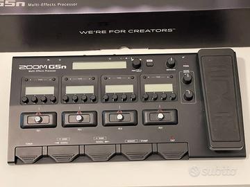 ZOOM G5n Pedaliera processore multieffetti per chitarra Confezione originale, alimentatore, manuale. Perfettamente funzionante Descrizione presa dal web: Per ricercare la ricchezza di possibilità che lo G5n offre, Zoom collabora continuamente con chitarristi professionisti noti per il loro gusto e l'amore per i grandi suoni di chitarra. Il G5n ha in dotazione 100 nuove patch custom-designed che ricreano decenni di suoni di chitarra fondamentali come i suoni iconici di Eddie Van Halen, Jimi Hendrix, Jimmy Page, Carlos Santana, Michael Schenker, e Brian May - ed in più esplora nuovi territori con combinazioni create esclusivamente per chitarristi G5n. Si distingue con "BGN L3ead", un suono lead moderno piegato in un delay modulato, o "Phazed," un suono valvolare intenso attraverso un phaser. La patch "UFO" imbriglia EQ parametrici nello stile del chitarrista della band omonima, e poi c'è "Dreamworld" un cruch overdrive intensificato con eco a nastro e hall riverb.