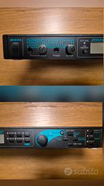 Lo Zoom Valve DSP 9150 è unprocessore multi-effetto valvolare per chitarra, un'unità ibrida che combina unpreamplificatore valvolare(per un suono caldo e organico) con una potente sezione dieffetti digitali(compressore, EQ, modulazioni, delay, riverbero, ecc.) per offrire una vasta gamma di toni, ideale sia dal vivo che in studio, grazie anche a due loop effetti esterni e controllo MIDI.