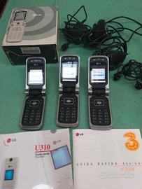 3 telefoni LG U310 completi di alimentatore, più un paio di cuffie