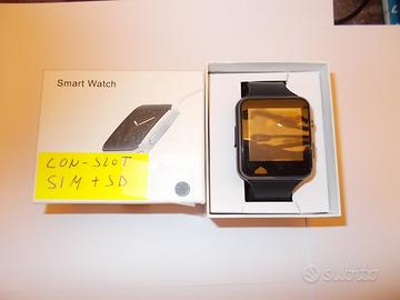 5 Smart Watch tutti di colore Nero, nuovi mai usati ancora nelle scatole originali perchè sono tutti regali. Hanno tutti gli Slot per SIM e Slot per Scheda SD. Sono tutti forniti di Manuale e di cavetto carica batteria .