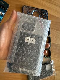 Vendo come da titolo kit di 7 cover per iphone 15 promax tutte pari al nuovo oppure nuove, tra cui cover con viti super resistente e cover impermeabile (entrambe professionali), poi il resto di 5 cover sono le