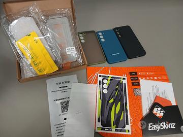 vendo accessori per s23 perché venduto sono 4 protezione schermo di cui 1 è in vetro,3 cover mai utilizzate e una skins posteriore antigraffio.