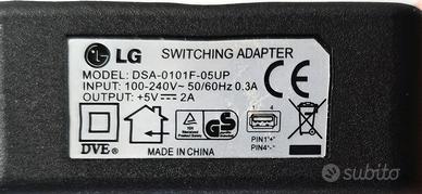 Adattatore AC LG 5V 2A con Porta USB - Modello DSA-0101F-05UP Vendo adattatore marca LG AC originale LG modello DSA-0101F-05UP, con uscita 5V 2A e dotato di porta USB. Questo alimentatore è ideale per caricare dispositivi elettronici come smartphone, tablet, power bank, e altri dispositivi compatibili con alimentazione USB. Perfettamente funzionante e in buone condizioni, pronto per l'uso immediato. - Marca: LG - Modello: DSA-0101F-05UP - Input: 100-240V ~ 50/60Hz, 0.3A - Output: 5V, 2A - Porta: USB standard - Condizioni: Usato, in ottimo stato Se hai bisogno di un adattatore affidabile per i tuoi dispositivi USB, questo prodotto fa al caso tuo. Contattami su Subito per ulteriori dettagli. Spedizione o ritiro a mano disponibili.