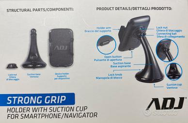 ADJ Supporto Cellulare Auto per Smartphone Navigatore con Ventosa Strong colore nero - 110-00077 Panoramica Adj 110-00077. Uso appropriato: Auto, Colore del prodotto: Nero. Larghezza: 80 mm, Profondità: 88 mm, Altezza: 146 mm.