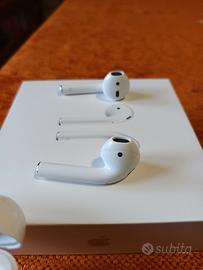Cuffie Apple Airpods 2, in considizioni pari al nuovo inquanto mai utilizzato, Completo di documenti di acquisto, cavo originale, scatola e cover in gomma siliconica. spedizione gestita da me tramite posta €9. prezzo leggermente trattabile
