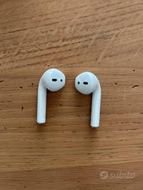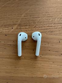 Vendo Airpods di 2a gen per passaggio a nuovi. Tenuti in buono stato, usati principalmente per telefonate di lavoro, custodia presenta segni di usura da borsa/tasca. Non hanno mai subito cadute.