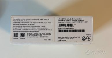 Vendo AirPods 3 generazione originali usate pochissimo ottime condizioni