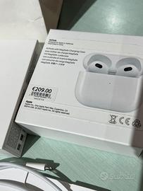 Vendesi AirPods 3a generazione singolo destro originale Apple causa perdita quello sinistro funzionante perfettamente suono di altissime prestazioni space sound nuovo come dalla fabbrica appena comprato confezionato ancora come dalla scatola con custodia e busta Apple astuccio e auricolare wireless di ultima generazione completo con filo per ricarica astuccio nuovo come dalle foto .comprato 209,00 euro prezzo verificabile nel retro della scatola.