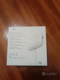 AirPods Pro (2ª generazione) originali Apple, usate pochissimo e in condizioni eccellenti. Perfettamente funzionanti, con qualità audio e cancellazione attiva del rumore ottimali. Custodia di ricarica e auricolari ben tenuti e originali Apple, senza segni, praticamente nuove.