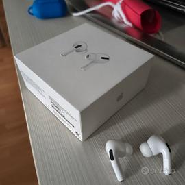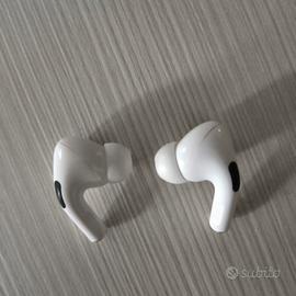 Vendo Airpods Pro ORIGINALE Apple . Prodotto usato ma tenuto benissimo. Case di ricarica sempre conservata in una custodia di gomma antiurto. Vendo perché l'auricolare SINISTRO non funziona correttamente. Quello destro è perfetto. Probabilmente la cancellazione del rumore è andata sulla cuffia sinistra. L'Audio nonostante il fruscio funziona.