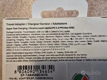 vendo alimentatore nuovissimo e imballato samsung da 45 watt Super fast charging 2.0 modello EP-TA845 per smartphone /tablet (lo aprite voi stessi) con cavo incluso -consegna SOLO a mano al mio domicilio-NON spedisco --prezzo non trattabile-