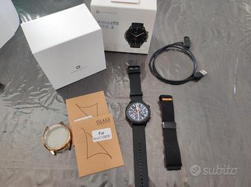vendo per passaggio ad altro modello amazfit gtr 2 in buone condizioni, usato sempre con vetrino sullo schermo, 2 cinturini l originale mai usato, 2 vetrini per lo schermo oltre quello gia applicato, un copri cassa color oro che pero avendo il vetrino non si puo applicare. batteria in ottimo stato piu di 15 giorni con frequenza cardiaca e livello sonno sempre attivi, solo qualche lieve segno all attacco del cinturino perche usato con cinturino in acciaio qualsiasi info non esitate a contattarmi.