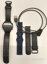 orologio con due anni di vita, ancora in buono stato, lievi graffi sul vetro ma poco visibili e non disturbanti cavetto di ricarica, cinturino originale e in omaggio due cinturini di ricambio