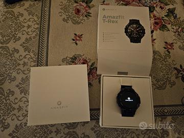 Vendo Amazfit T-Rex in ottime condizioni, con scatola originale, cavo di ricarica e scontrino d'acquisto.