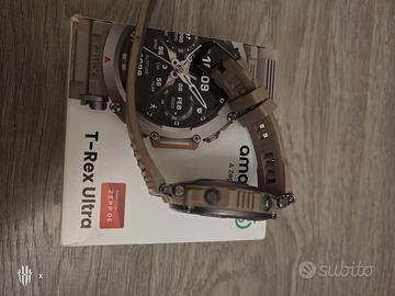 Amazfit t rex ultra versione Sahara una delle più belle edizioni di sempre, tenuto sempre con vetro di protezione, mai usato a mare e cicli di carica sempre corretti, la batteria dura tantissimo, scatola manuale e caricabatterie tutto originale e in perfette condizioni, qualche piccolo segno di usura sulla ghiera in acciaio ma si deve guardare molto bene per scorgerli, è uno dei migliori che abbia provato, lo vendo per passare al modello successivo... Sperando di non pentirmene