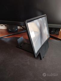 Amplificatore universale per schermo di smartphone. Permette di ingrandire lo schermo del telefono per una migliore visione. - Compatibile con la maggior parte degli smartphone. -perfetto per guardare film/serie TV/ video -dovrevve avere anche una cassa integrata se si collega con un cavo Jack -si può regolare l'angolazione