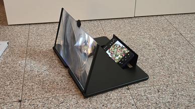 Amplificatore per schermo del cellulare ideale per guardare video, film e serie TV senza affaticare gli occhi. Ingrandisce l’immagine dello smartphone creando un effetto “mini cinema”.
