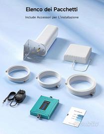 Ripetitore 4G 3G 2G Amplificatore Segnale Cellulare Mobile Ripetitore Segnale GSM/LTE/DCS/WCDMA, Bande 1/3/7/8/20, Per Urbano/Rurale/Seminterrato/Casa ecc, Supporta Tutti Gli Operatori NUOVO mai usato, cofezione mai aperta.