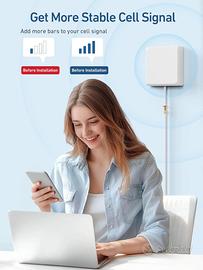 Amplificatore Segnale Cellulari Supporta le Bande 1/3/7/8/20 Ripetitore Segnale Cellulare 5G 4G 3G LTE GSM Per Tutti Gli Operatori Come TIM Tre - Display LCD Ad Alta Definizione. 【Migliori Dati 5G 4G LTE 3G e Voce】- 70dB signal booster ad alto guadagno, supporta tutti gli operatori italiani come TIM, Wind Tre, ecc. Godetevi un segnale di telefonia mobile più forte anche nelle aree più remote. 【Multi-Utente, Multi-Banda】- Questo ripetitore di segnale per telefoni cellulari altamente compatibile fornisce segnali cellulari più affidabili a più utenti e più dispositivi contemporaneamente. Supporta le bande 1/3/7/8/20.Assicurarsi che le bande corrispondano prima dell'acquisto. 【Semplice Installazione】- L'antenna omnidirezionale riceve segnali da tutte le direzioni a 360°. Accessori completi, nessuna esperienza tecnica richiesta, nessuna foratura, plug and play. 【Semplice Installazione】- L'antenna omnidirezionale riceve segnali da tutte le direzioni a 360°. Accessori completi, nessuna esperienza tecnica richiesta, nessuna foratura, plug and play.