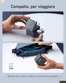 Anker Caricatore Wireless iPhone Cube 3 in 1 con MagSafe 15W, Caric Wireless Richiudibile Ricarica Rapida Max 15W, iPhone 16/15/14, Apple Watch Series 1-8/Ultra, AirPods Pro/3/2 (con Caric USB C 30W)