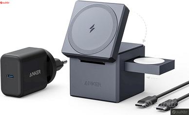 Informazioni su questo articolo Dado di ricarica 3 in 1 per dispositivi Apple: la soluzione di ricarica compatta all-in-one per iPhone, Apple Watch e AirPods. Progettato per MAGSAFE: ricaricate i vostri iPhone serie 14/13/12 senza problemi e senza fili con potenza di ricarica da 15 W e attrazione magnetica tramite Apple MagSafe. Design compatto: il piccolo caricabatterie pieghevole si adatta facilmente alla borsa del computer portatile quando si è in viaggio o sulla scrivania dell'ufficio per fornirvi una maggiore quantità di energia. Angolo regolabile fino a 60°: usate il vostro iPhone in verticale o in orizzontale mentre vi godete una ricarica costante. Contenuto della confezione: cubo di ricarica 3 in 1 del marchio Anker con caricabatterie MagSafe, un alimentatore da 30 W, un cavo di ricarica USB-C da 150 cm a USB-C, istruzioni per l'uso (lingua italiana non garantita).