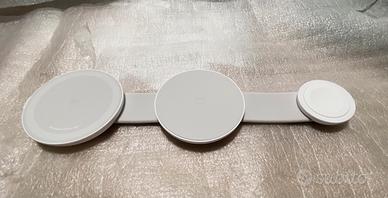Su amazon ha un prezzo di euro 99 Marchio Anker Dispositivi compatibili iPhone, Apple Watch, AirPods Modelli di telefono compatibili iPhone 14, iPhone 13, iPhone 12 e modelli futuri compatibili con MagSafe Componenti inclusi Anker Stazione di ricarica wireless MagGo (3 in 1, pad pieghevole), cavo USB-C a USB-C da 1,5 m, guida di benvenuto, garanzia di 24 mesiAnker Stazione di ricarica wireless MagGo (3 in 1, pad pieghevole), cavo USB-C a USB-C da 1,5 m, guida di b… Mostra altro Caratteristica speciale Safe Colore bianca Ricarica rapida da 15W per iPhone e Apple Watch: Ricarica il tuo iPhone 15 Pro da 0 a 20% in soli 15 minuti, e il tuo Apple Watch 9 da 0 a 30% in 22 minuti con il nostro caricabatterie wireless certificato e compatibile con MagSafe. Ultra-portatile, pratico da trasportare: Porta una ricarica rapida e senza fili ovunque con te, grazie al nostro caricatore Qi2 3-in-1 pieghevole e grande come una palla da baseball. Caricatore wireless 3-in-1: Per mantenere il spazio di lavoro minimalista e sempre ordinato, il nostro caricatore wireless 3-in-1 alimenta più dispositivi contemporaneamente. Modalità StandBy per una migliore visualizzazione: Il nostro caricatore ti permette di posizionare l’iPhone in orizzontale e approfittare di una migliore visibilità dello schermo, inoltre supporta la modalità StandBy quando è ripiegato. La confezione contiene: Stazione di ricarica wireless Anker MagGo (3-in-1, supporto pieghevole), cavo da USB-C a USB-C da 1,5 m, guida di benvenuto, garanzia di 24 mesi e il supporto del nostro cordiale servizio clienti.