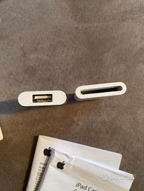 - Il connettore della fotocamera dispone di un'interfaccia USB. Basta collegarlo alla porta del connettore dock dell'iPad, quindi collegare la fotocamera digitale o l'iPhone utilizzando un cavo USB (non incluso). iPhone 3G non è supportato.