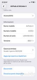 Vendo Apple AirPods 4 ORIGINALE con fattura di acquisto e scadenza garanzia a Dicembre 2026