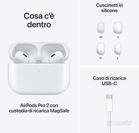 Causa doppio regalo vendo ancora incellofanato nuovi di zecca, Apple Air Pods Pro 2 Auricolari wireless, Auricolari Bluetooth, Cancellazione attiva del rumore, Funzione Apparecchio acustico, Trasparenza, Audio spaziale personalizzato, Alta fedeltà, Ricarica USB-C