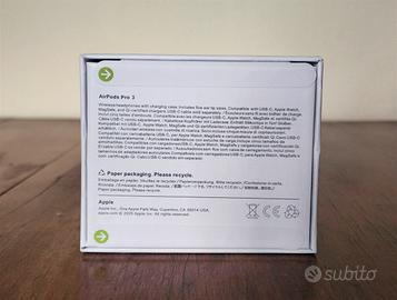 Vendo Apple AirPods Pro 3 (ANC) Nuove, sigillate, mai aperte. Gli AirPods Pro 3 sono dotati di cancellazione attiva del rumore. - Con custodia di ricarica (USB-C) con altoparlante. Sono in ottime condizioni, praticamente nuovi. - Modello con Cancellazione attiva del rumore Numero di serie: MM2NVRH1QK - Prezzo trattabile. (Si prega di fare offerte serie). (No perditempo).