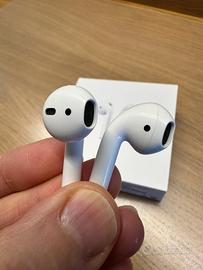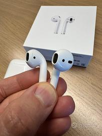 Apple AirPods ORIGINALI di seconda generazione, modello A2031 versione 6F21. In ottimo stato con confezione originale Apple. Usati veramente poco e sempre gommini di protezione in silicone. Ritiro a mano a Roma in zona EUR o altezza metro Laurentina