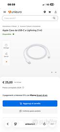 Lightning alla porta USB-C o Thunderbolt 3 (USB-C) del Mac per la ricarica e la sincronizzazione, oppure alla porta USB-C di un iPad per la sola ricarica.