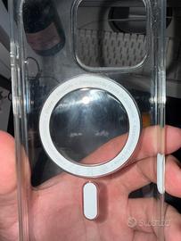 Vendo custodia apple trasparente magsafe per iphone 16 pro,originale acquistata sul sito apple con fattura. Con qualche segno di usura ma trasparente e bella