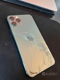 Si propone iPhone 11 Pro con taglio di memoria da 64 giga in colorazione verde petrolio come da foto il telefono presenta la back cover lesionata che non influisce minimamente sul regolare utilizzo perfettamente funzionante compreso Face ID qualsiasi prova da uso quotidiano stato batteria 95 scambio a mano zona Enna o spedisco solo a mezzo bonifico tradizionale, prezzo assolutamente intrattabile, non proporre altro e soprattutto non insistere, cedo telefono cover e cavetto per la ricarica a astenersi, perditempo e sognatori