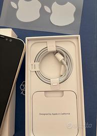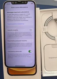 iPhone 12 128 GB Bianco Guscio (Scocca posteriore) vetrino leggermente lesionato (vedi foto) Cover nero similpelle in omaggio Telefono completamente originale e funzionante.