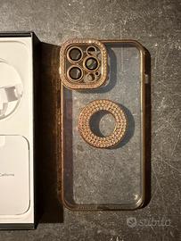 colore oro vendo per cambio iPhone, presenta leggero graffio sullo schermo e piccoli segni in alcuni punti del bordo metallico, per il resto condizioni ottime + cover nuova trasparente e gold con brillanti su cerchio apple e su protezione fotocamera con pellicola brillantinata applicabile internamente alla cover + cover nuova trasparente con bordo e protezione fotocamere rosa metallico più supporto rosa ad anello estraibile + cover nuova trasparente con bordo rosa chiaro e protezione fotocamere rosa metallico