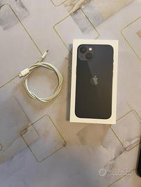 Vendo iPhone 13 colore nero Midnight, memoria da 128GB, acquistato nel mese di Luglio 2022, condizioni perfette, vendo per passaggio a telefono superiore. Il telefono ha la pellicola protettiva di vetro temperato, montata circa due mesi fa, ed è sempre stato usato con cover. Come si può vedere dalle foto il telefono non ha nessun graffio o segno di usura, tenuto in maniera maniacale. La batteria è stata sostituita a fine Novembre 2025 ed è al 100% di capacità, come appena uscito dalla scatola. Completo di confezione originale, cavo di ricarica originale Apple e cover acquistata a Dicembre 2025.