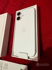 Apple iPhone 16 da 128GB color bianco, completo di scatola, cavo mai utilizzato e scontrino originale.