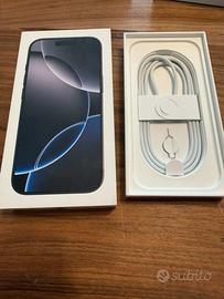 Apple Iphone 16 pro black titanium (nero), 256 gb con un anno di garanzia. Telefono perfetto, sempre tenuto con custodia e pellicola (tuttora presente) Totalmente originale e mai riparato Batteria ancora al 92% Scatola e corredo nuovi e mai utilizzati Regalo custodia protettiva magnetica per carica wireless Prezzo trattabile