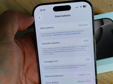 Acquistato direttamente in Apple Store il 14/10/24, quindi ancora in garanzia. Sempre usato con vetro protettivo. Ovviamente telefono perfettamente funzionante, consegnato con scatola originale e cavo.